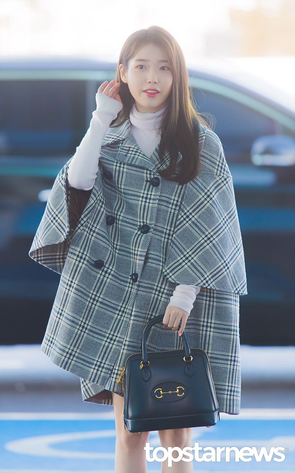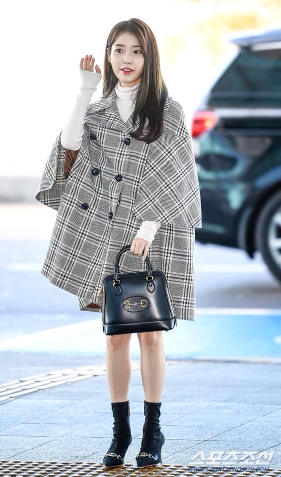 IU trong cây Gucci , nội sương sương cái áo khoác Gucci sọc ca rô đã gần cả trăm triệu đồng, kiểu túi đen Gucci Horsebit Small Top Handle Bag tầm hơn 60 triệu đồng