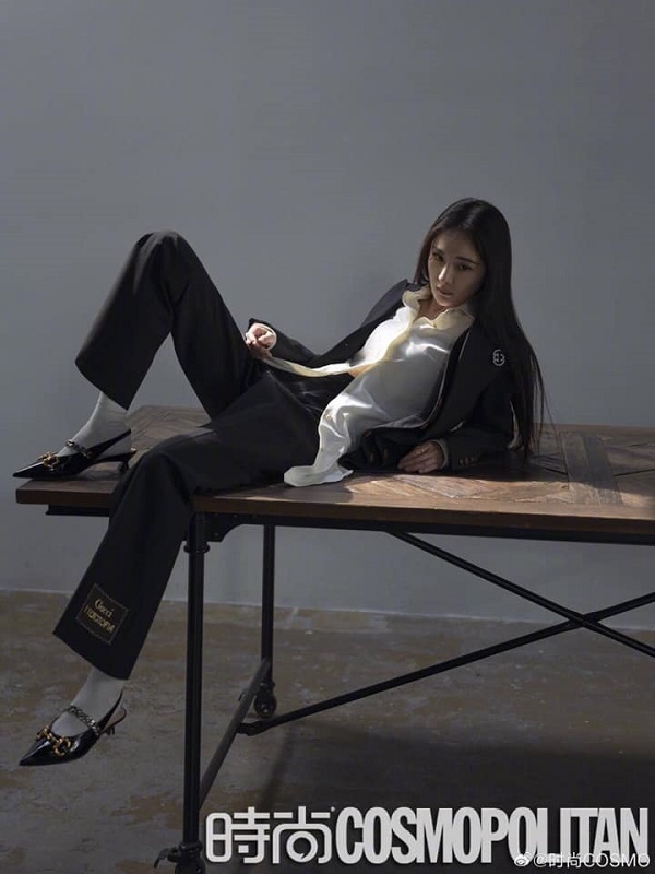 Lần này trong suốt các shoot hình thời trang, Dương Mịch diện những thiết kế suit thanh lịch và phụ kiện đến từ nhà mốt Gucci