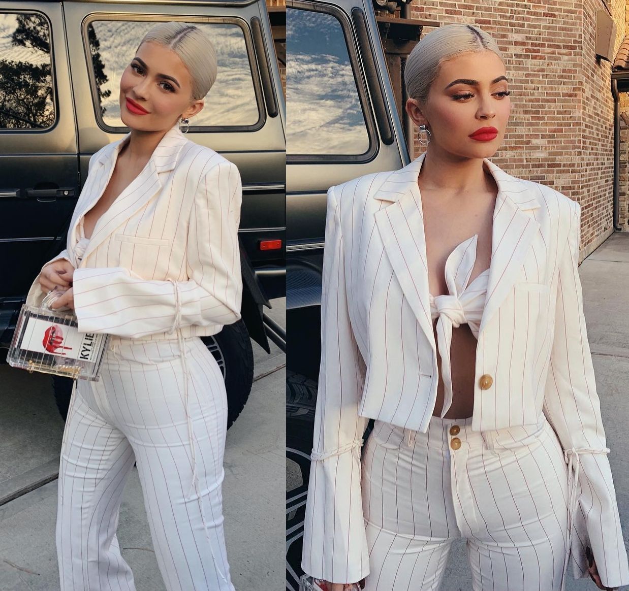 Kylie Jenner thanh lịch và gợi cảm khoe trọn vòng 3 trong bộ suit trắng sọc