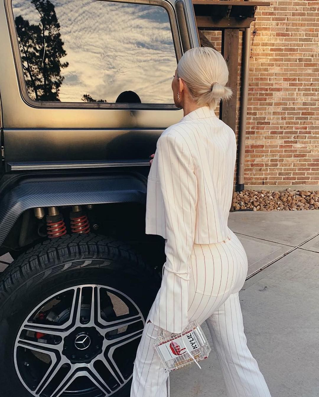 Em gái út nhà Kardashian mới đây đã post tấm hình diện suit trắng sọc thanh lịch khoe vóc dáng thon gọn, nóng bỏng sau 8 tháng sinh con trên instagram