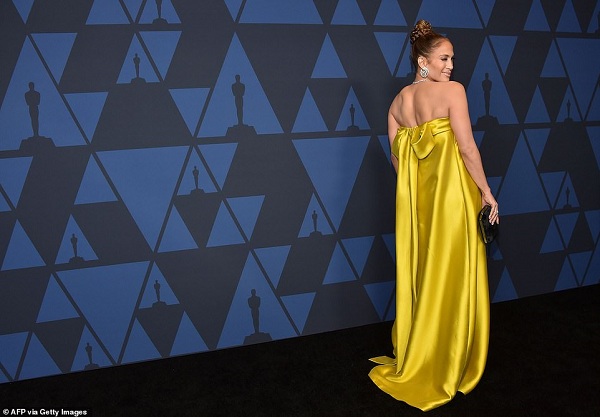 Jennifer Lopez chọn thiết kế váy màu vàng óng ánh kín đáo đến từ Reem Acra