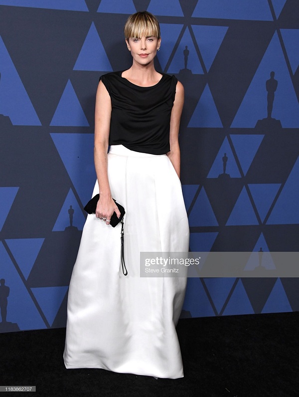 Người đẹp gốc Nam Phi Charlize Theron giản dị với set đồ đen trắng của Tom Ford kết hợp túi xách và hoa tai kim cương cùng mái tóc ngắn cá tính
