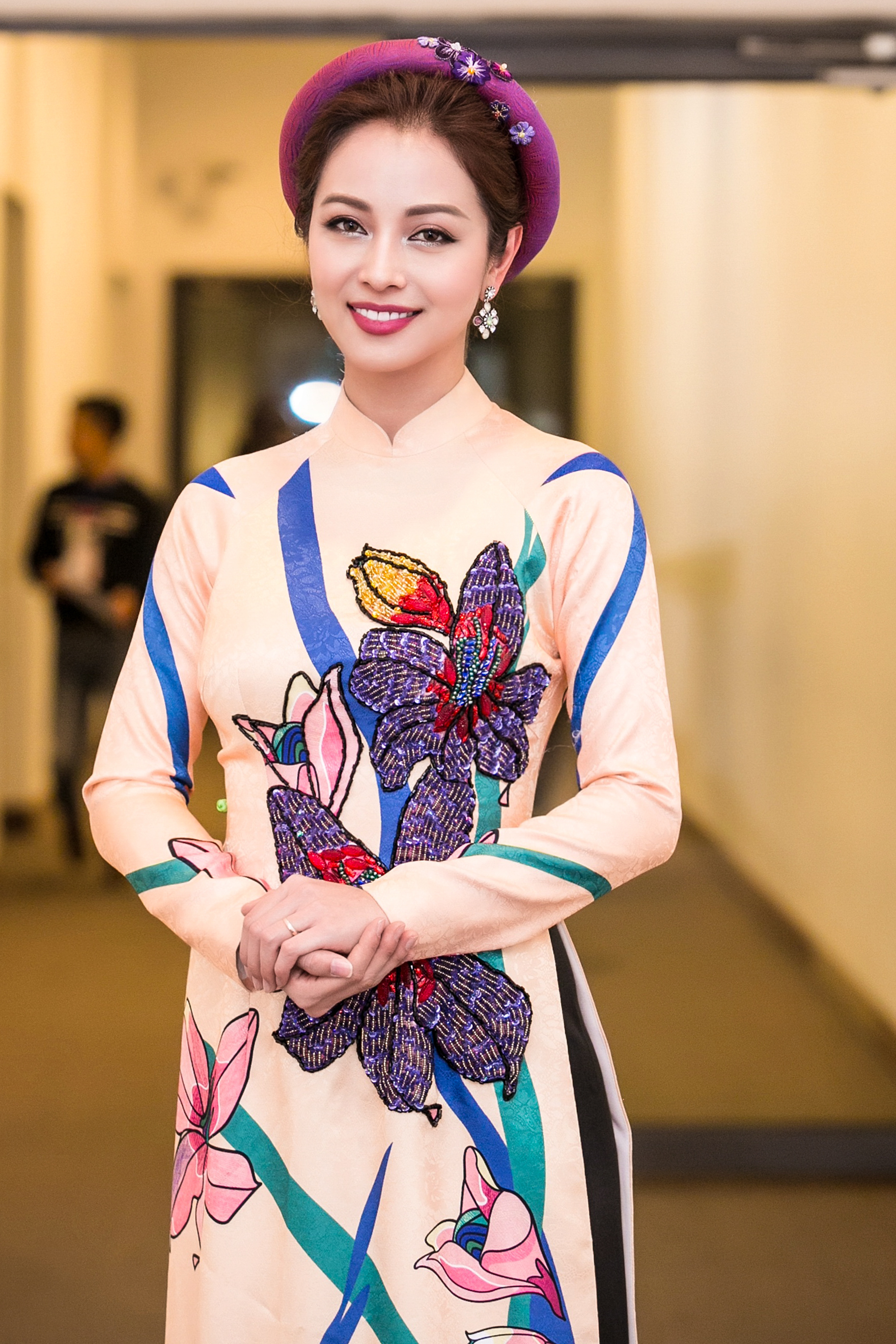 Phụ kiện hoa tai, mấn đội đầu cùng tông trang điểm tôn nét thuỳ mị, đằm thắm của vợ cũ ca sĩ Quang Dũng.