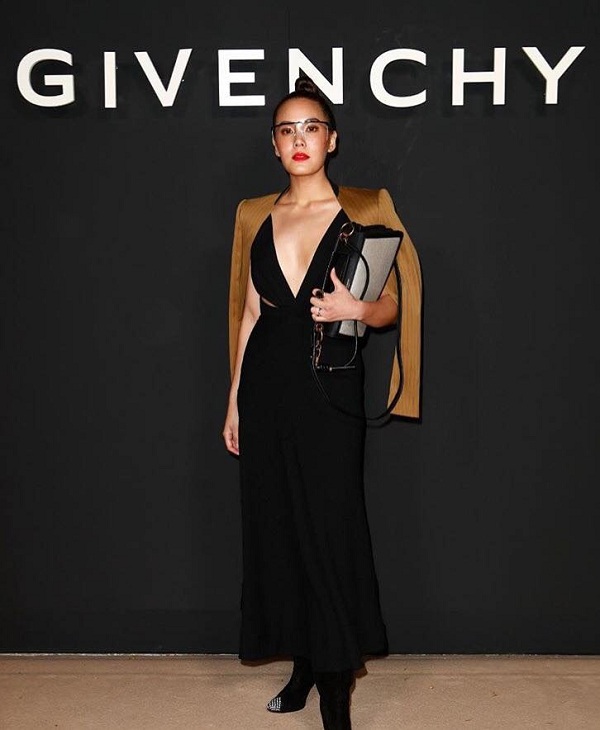 Nữ diễn viên kiêm người mẫu hàng đầu Thái Lan Janie Tienphosuwan quyến rũ trong thiết kế đen cắt xẻ táo bạo vòng 1 phối hờ chiếc áo khoác vàng đồng cùng phụ kiện mắt kiếng trong suốt bảng to nổi bật