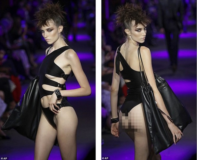 Loạt make-up khi tất cả các models được “nhấn” vào đôi mắt, cùng với mái tóc đánh rối trên đỉnh đầu tạo cảm giác nổi loạn, dữ dội mà vẫn gợi cảm trong show của Tom Ford