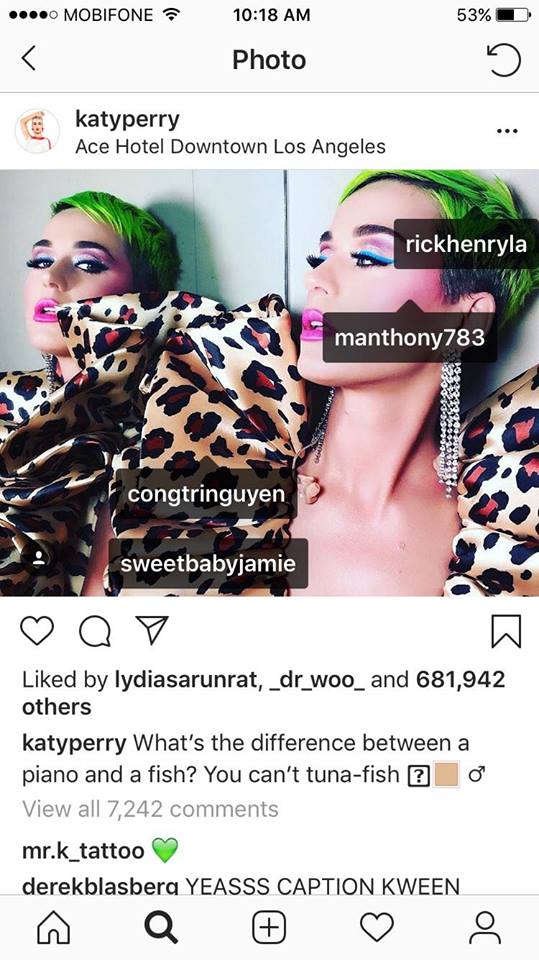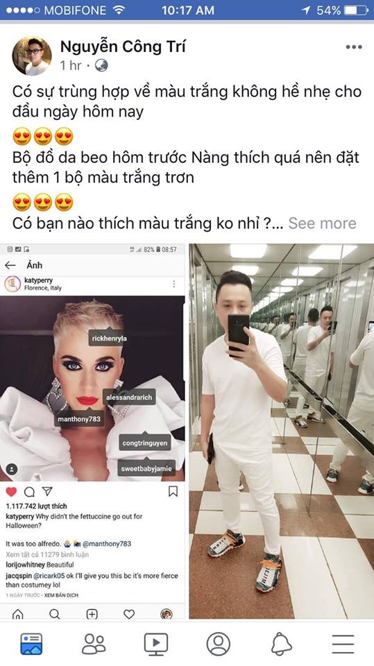 Katy perry update trên trang cá nhân tag tên thẳng ntk Công Trí
