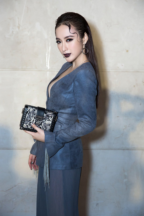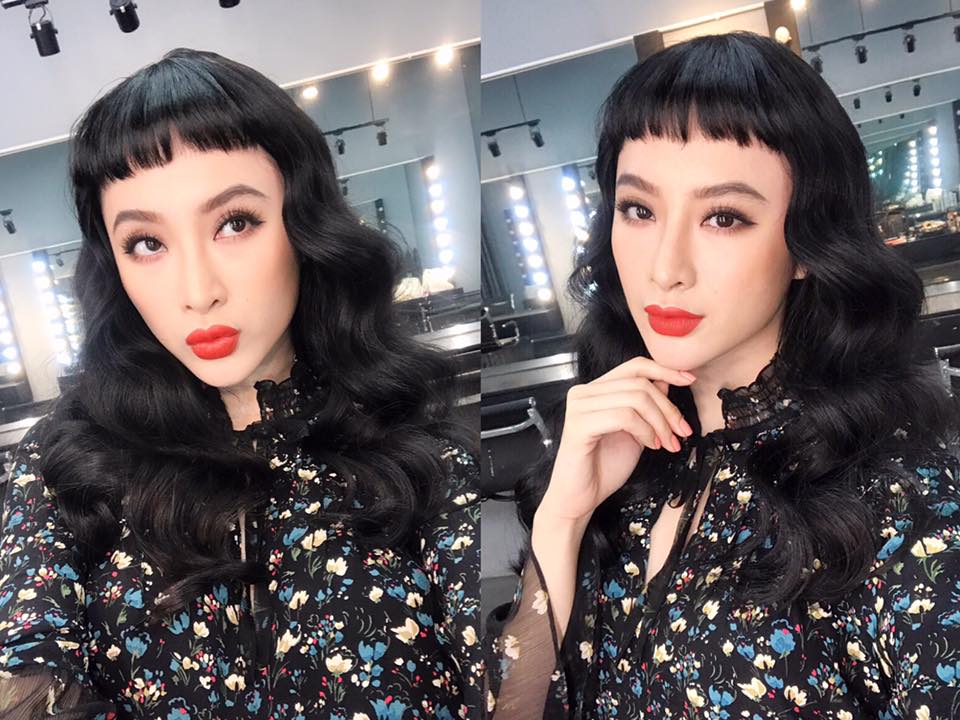 Thông thường, kiểu mái này đem lại vẻ nhí nhảnh, dễ thương cho các cô gái nhưng Angela Phương Trinh thì lại quyến rũ và kiêu sa đến không ngờ.