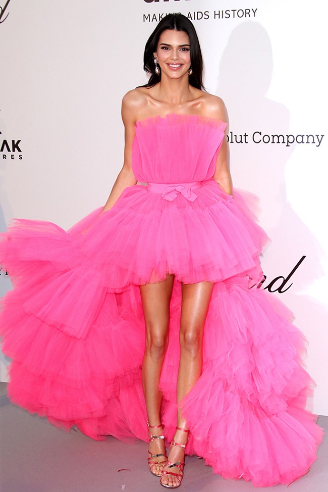Tại sự kiện amfAR thuộc khuôn khổ LHP Cannes 2019 hồi tháng 5. Chiếc váy búp bê hồng Barbie Girl yêu kiều này đã giúp Kendall Jenner lọt vào top sao ăn mặc đẹp nhất tại sự kiện, thu hút toàn bộ sự chú ý của các quan khách.