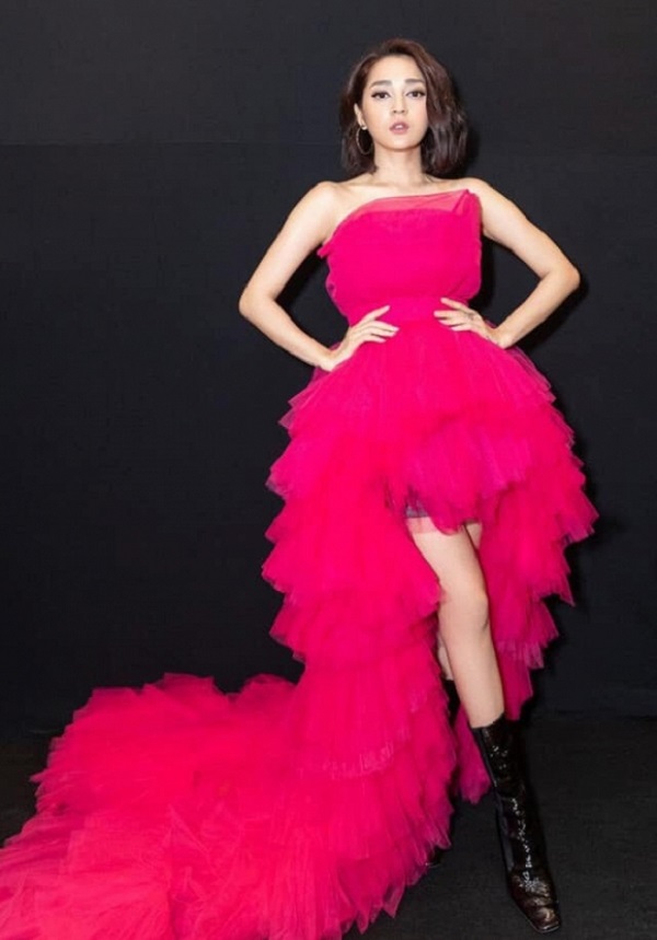 Trước cả Kendall Jenner, Tóc Tiên đã từng diện kiểu váy đầm voan hồng xếp tầng màu xanh lá chuối khi chuẩn bị đi biểu diễn