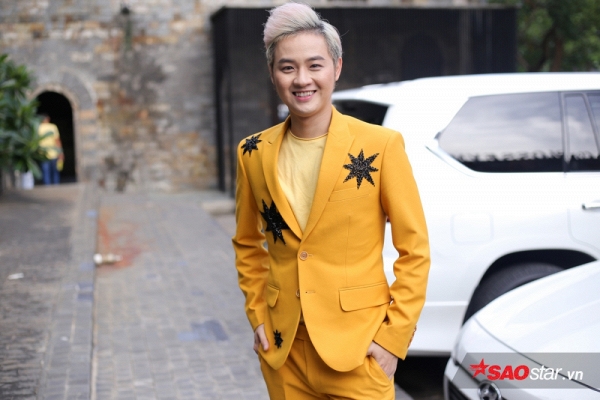 Giọng ca Tonight chói loá với bộ suit vàng đính hoạ tiết. Rực rỡ sắc màu là lựa chọn quen thuộc của Thanh Duy.