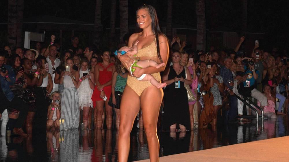 Người mẫu Mara Martin đã cho con gái 5 tháng tuổi của mình bú trên sàn diễn khi cô trình diễn trong show áo tắm thường niên của tạp chí thể thao danh tiếng Sports Illustrated.