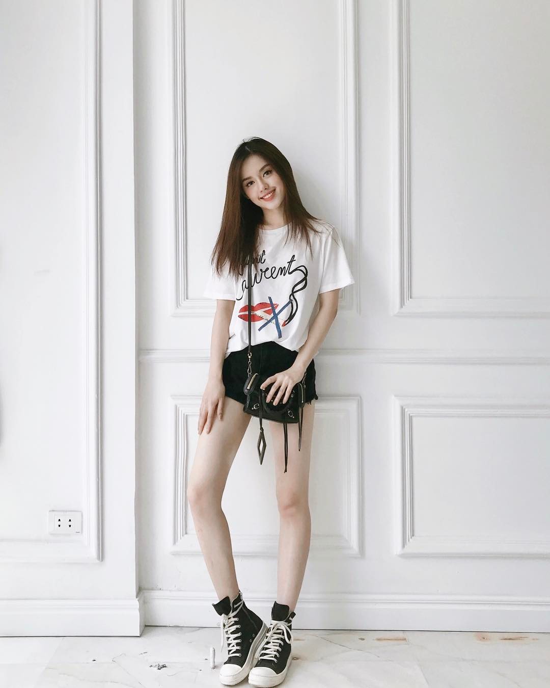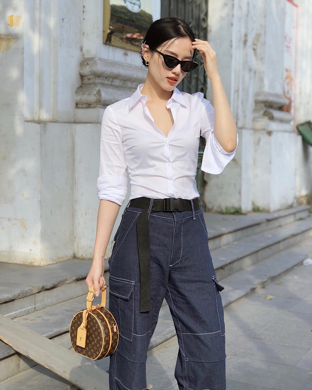 Một chiếc túi nhưng có thể kết hợp cùng nhiều phong cách thời trang khác nhau. Nếu hình ảnh phía trên cô nàng thanh lịch với áo dài tay bèo nhún thì trong set đồ này cô trẻ trung pha chút gợi cảm trong sự năng động của độ tuổi 9X.