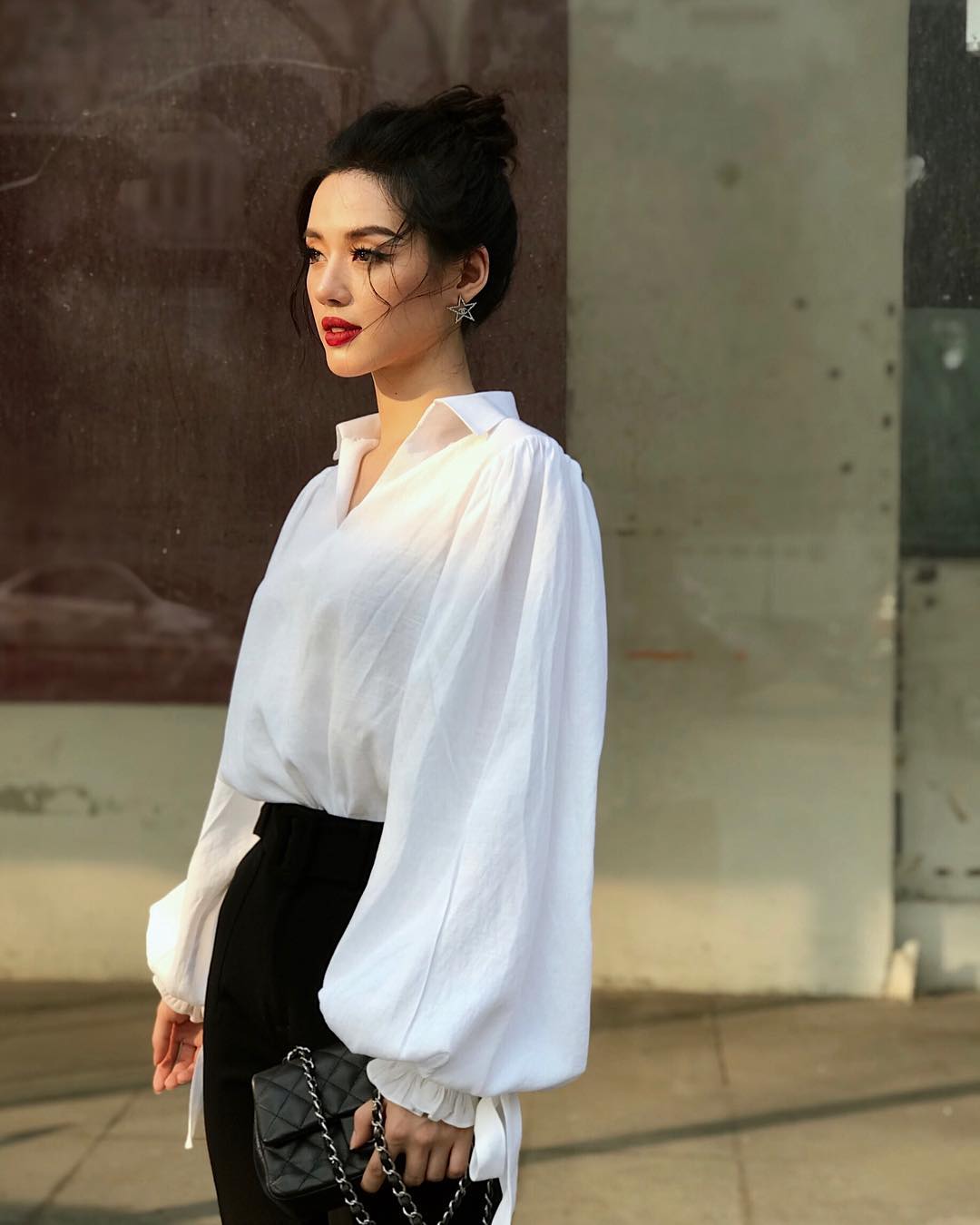 Khánh Linh thể hiện trình phối trang phục mướt mắt với kinh nghiệm làm mẫu thời trang khá lâu.