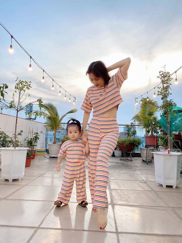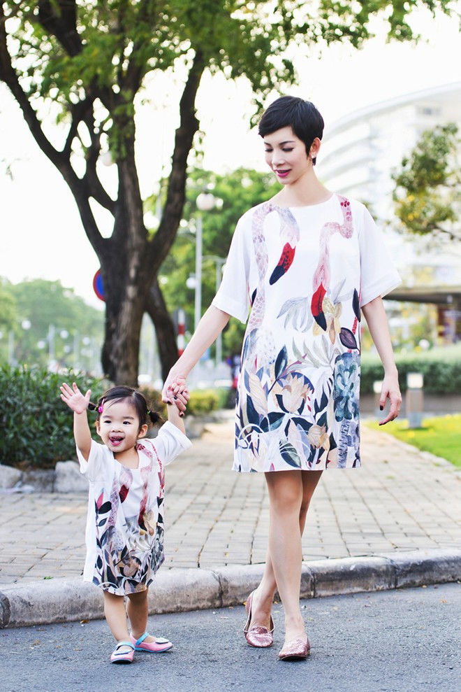 Từ trước đến, người đẹp rất hay diện đồ đôi cùng con gái, những bộ cánh cô chọn rất nhẹ nhàng, tươi tắn và dễ mặc.