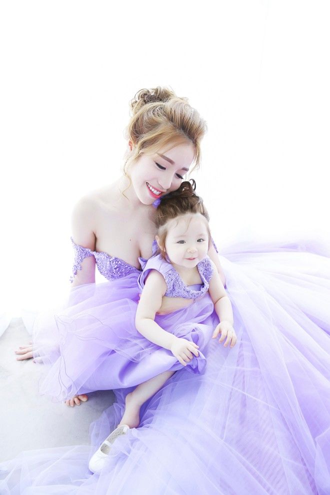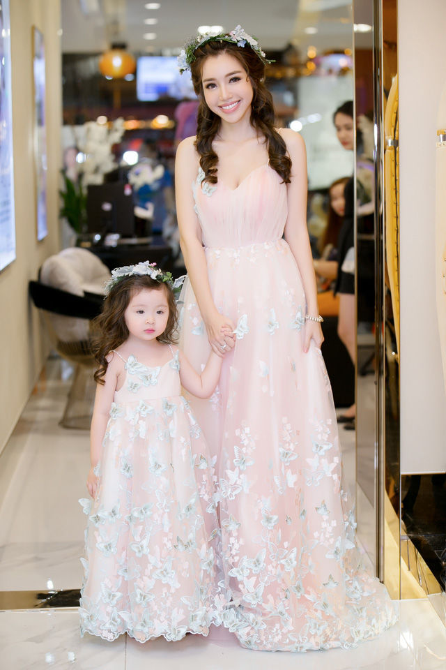 Elly Trần lại thường xuyên cho con gái cưng mặc váy ren, hoa giống mình, trông cả hai chẳng khác những nàng công chúa.