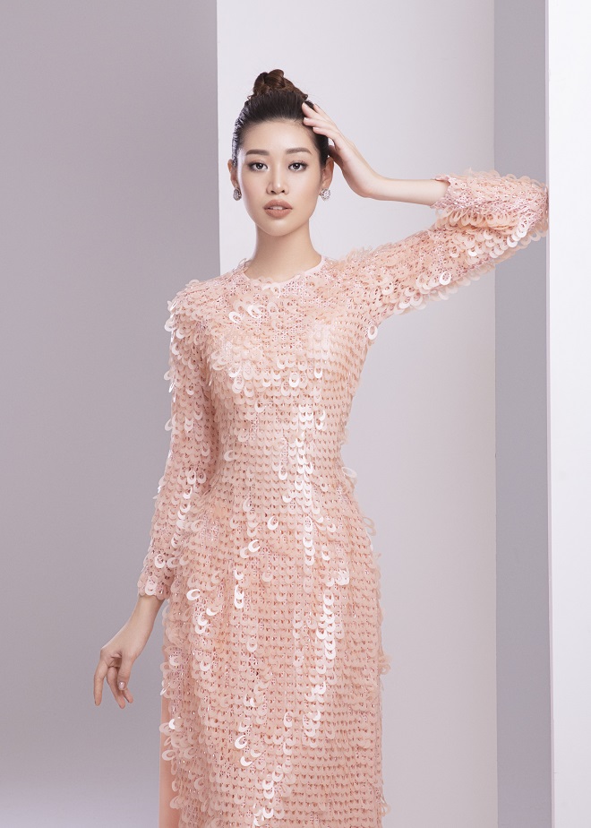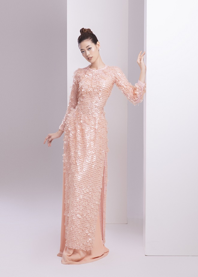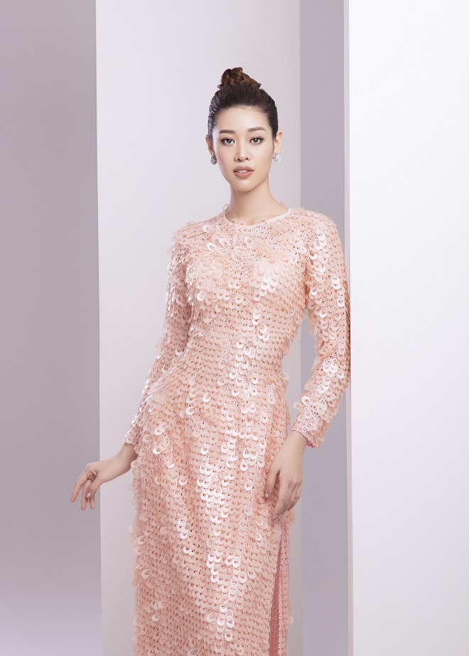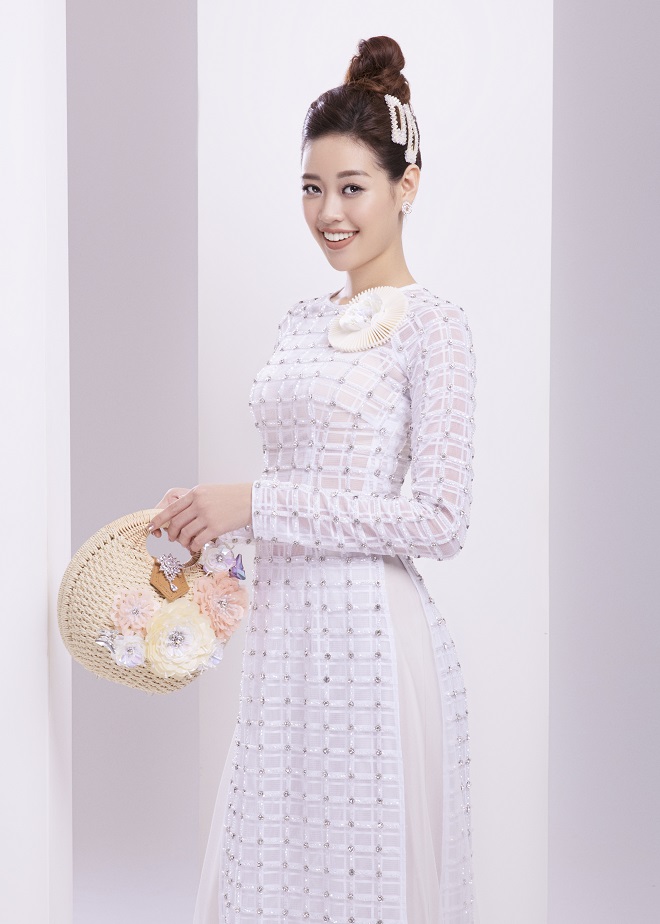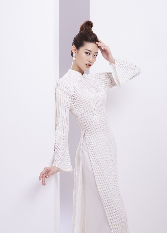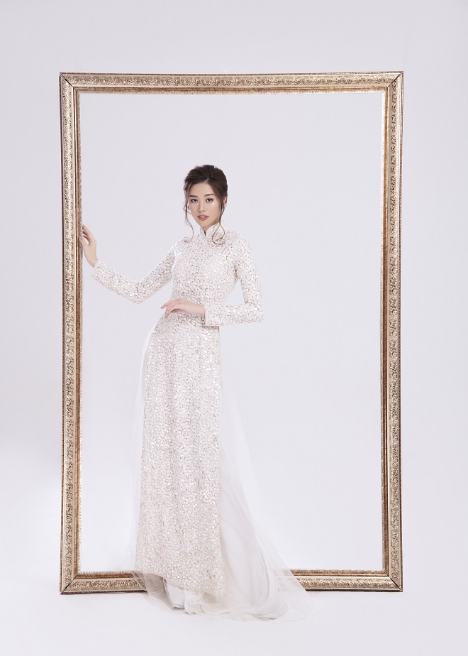 Vốn là người đẹp được biết đến bởi các danh hiệu liên quan đến áo dài như Duyên dáng áo dài nữ sinh Việt Nam, người đẹp áo dài trong hai lần “chinh chiến” tại Hoa hậu Hoàn vũ, Khánh Vân chứng tỏ sự nổi bật của mình khi diện thiết kế truyền thống của dân tộc.