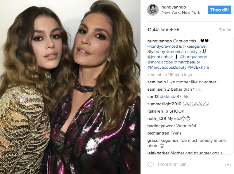 Siêu mẫu Cindy Crawford cùng con gái rượu Kaia Gerber trong lần hợp tác với Hùng.
