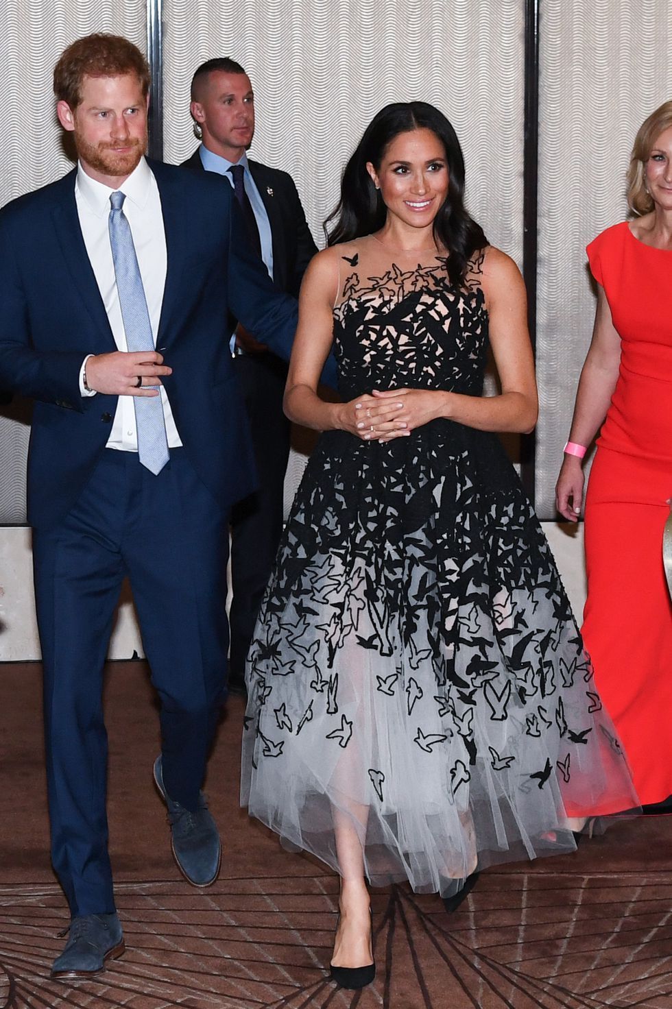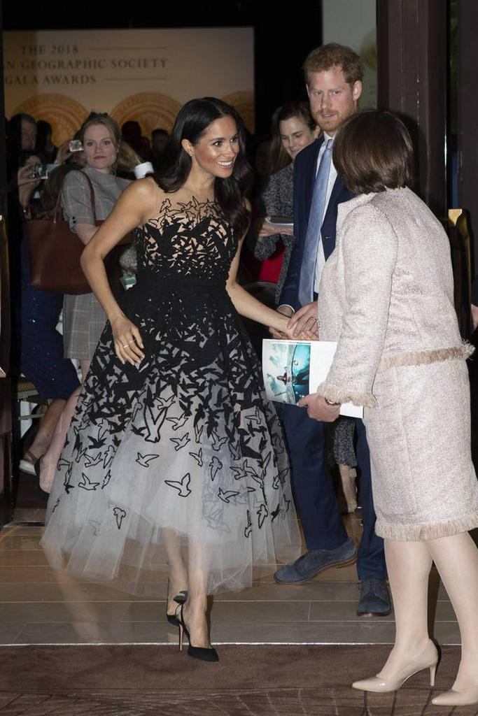 Công nương Meghan trong mẫu thiết kế của thương hiệu Oscar de la Renta với họa tiết hình những chú chim trị giá 13.000 USD ( hơn 300 triệu VND).