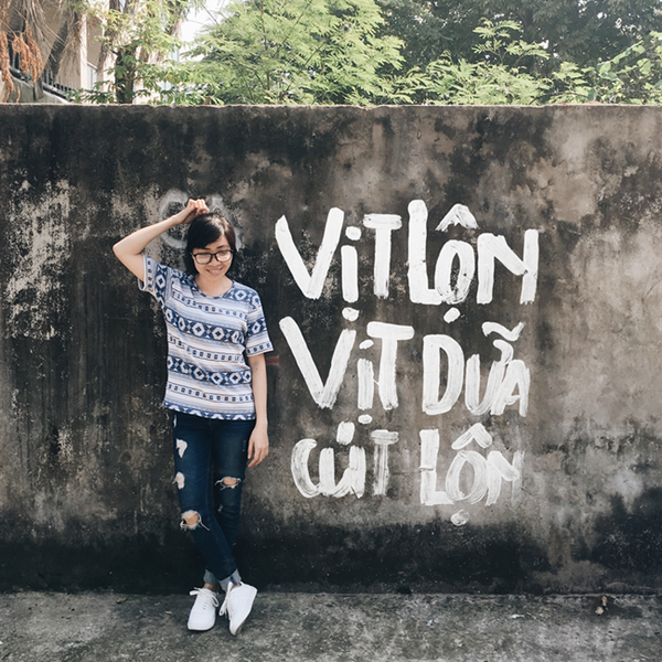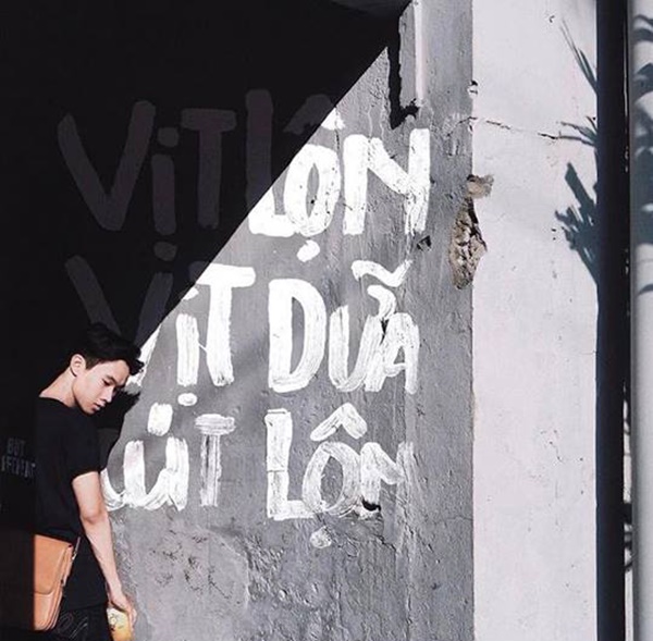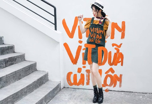 Nền chụp street style “chất” không tưởng khi ghép thêm dòng chữ ngộ nghĩnh. Bây giờ thì khỏi cần mất công lên concept, cứ đứng dựa tường bất kì, phông bất kì, và thêm dòng chữ hot-trend vào!