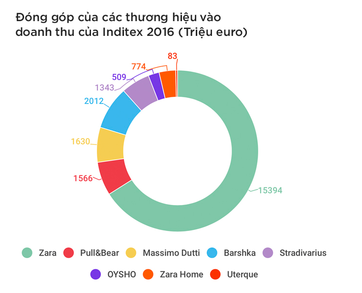 Sự đóng góp của “gà chiến” số một - Zara vượt hơn một nửa so với tổng còn lại. Ấy vậy mà Inditex vẫn rất chu đáo khi gửi gắm thêm bộ ba “con cưng” khác để viện trợ trong cuộc chiến sống còn lần này.