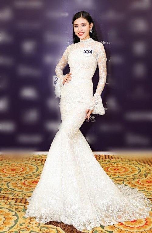 Với thân hình chuẩn, Chúng Huyền Thanh thường tự tin xuất hiện tại cuộc thi Hoa hậu Hoàn vũ Việt Nam với bộ đầm đuôi cá.