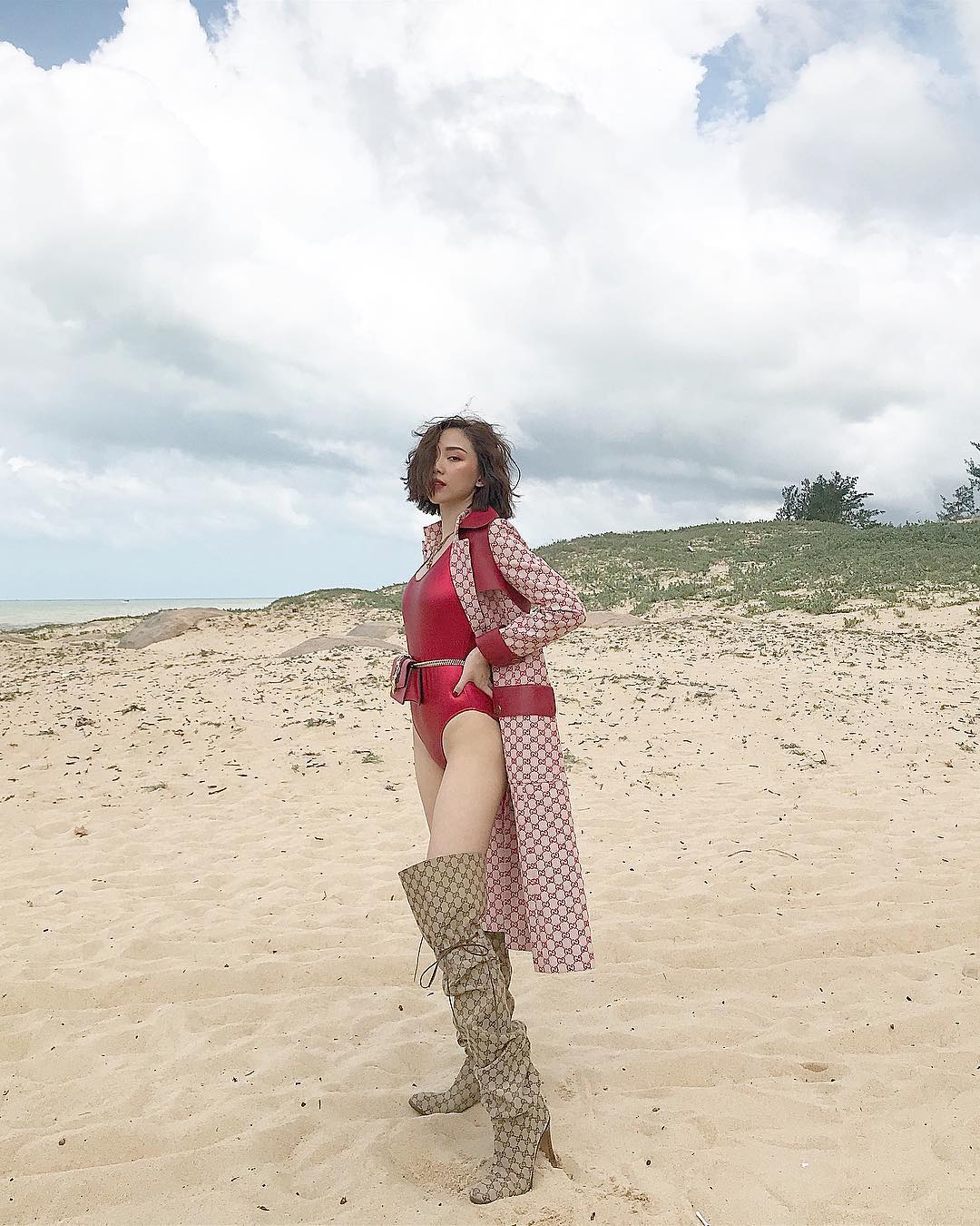 Với gu ăn mặc tài tình, Tóc Tiên khiến khán giả mắt chữ A, miệng chữ O khi đăng tải tấm ảnh khoe street style cá tính. Đặc biệt, thoạt nhìn vào, không ít khán giả cho rằng cô nàng đang diện áo tắm, đứng tạo dáng giữa sa mạc mênh mông.