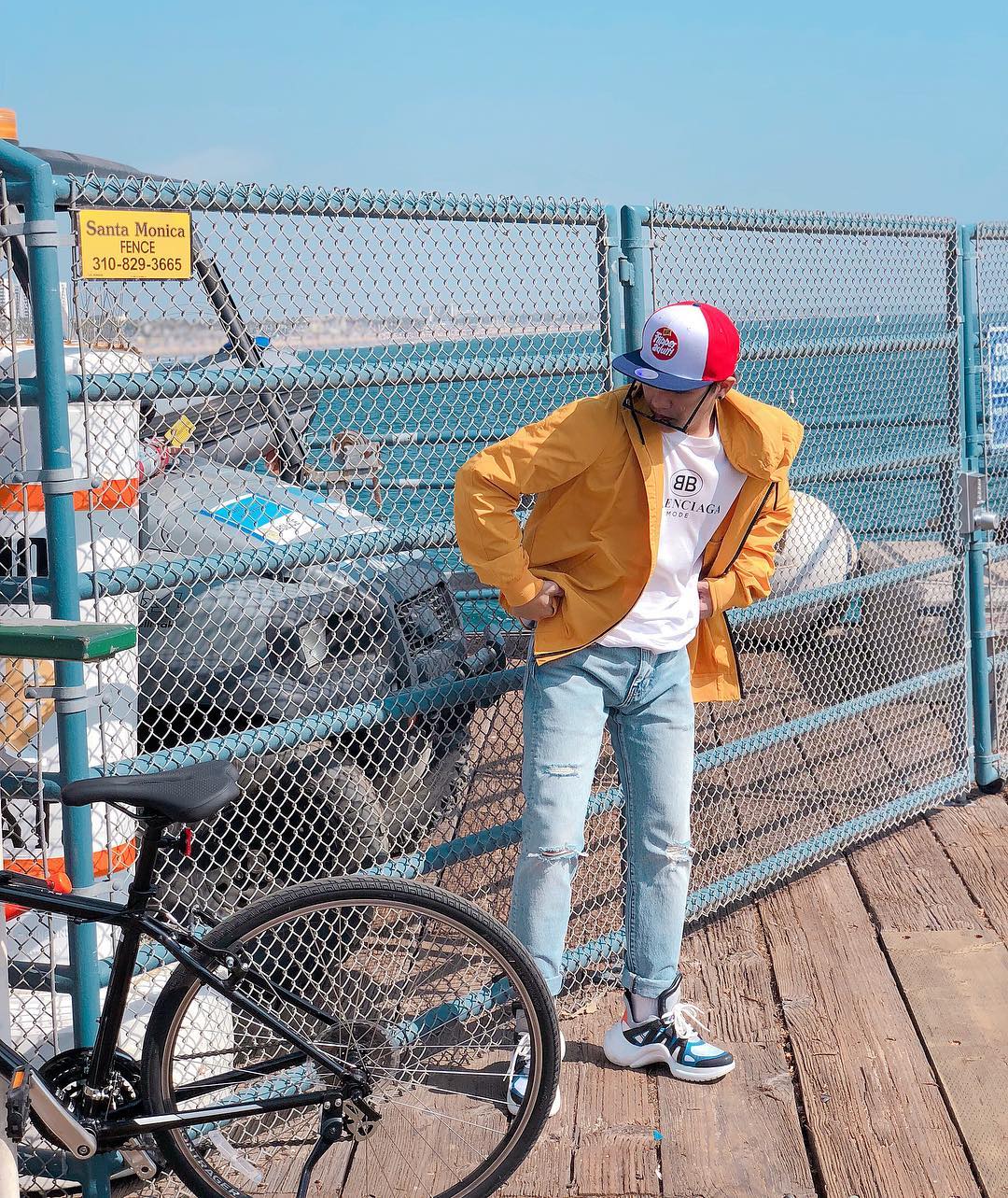 Chẳng cần cầu kỳ, Bảo Anh cứ đơn giản cùng quần short, áo ba lỗ và “chốt hạ” bằng đôi sneaker Balenciaga là đã xinh yêu hết phần thiên hạ.