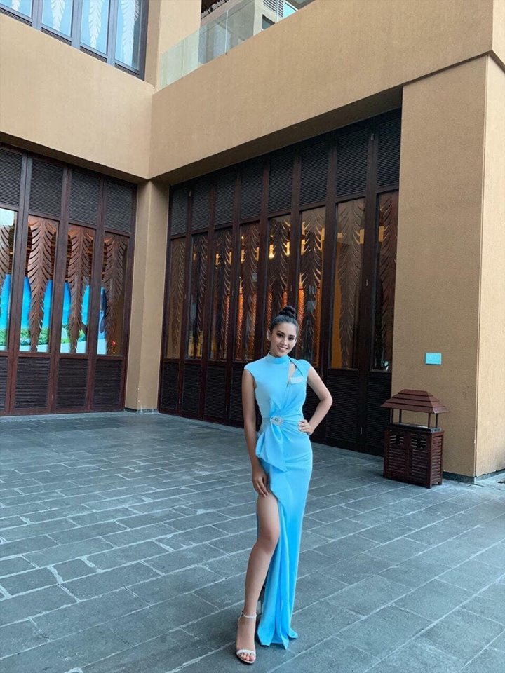 Tiếp tục giữ vững phong độ, trong ngày hôm qua 19/11, Tiểu Vy xuất hiện trong thiết kế tôn đường cong hoàn hảo cùng đôi chân dài thẳng tắp đã dành được cơn mưa lời khen từ người hâm mộ.