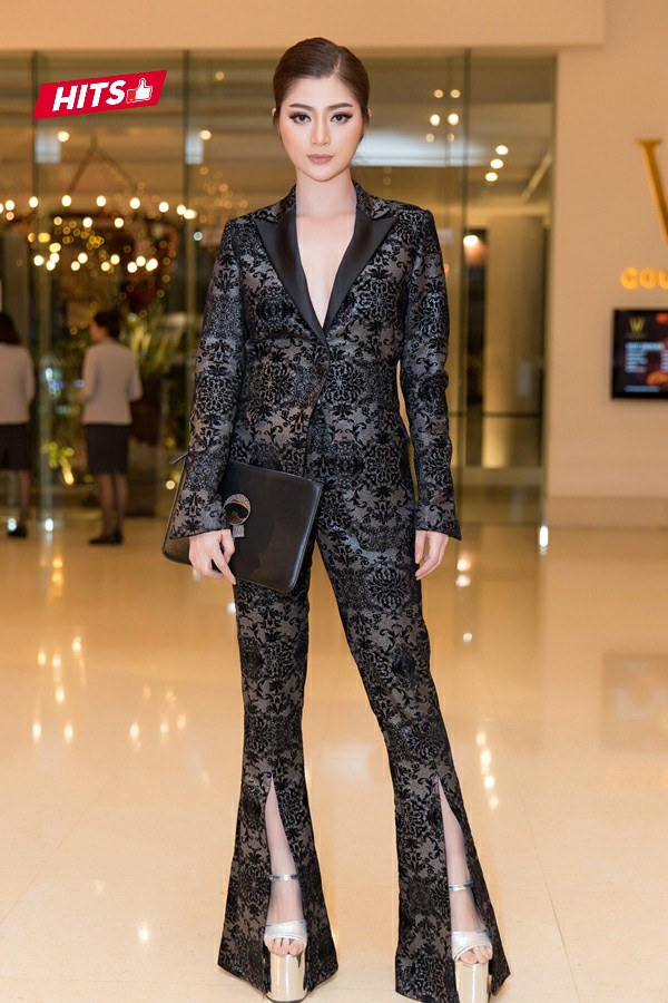 Tham dự một sự kiện, Thanh Hằng chứng tỏ danh xưng icon thời trang khi trưng diện bộ trang phục theo xu hướng bất đối xứng. Cách kết hợp chất liệu từ mềm mại như ren đến áo vest đem đến cái nhìn sang trọng và đẳng cấp.
