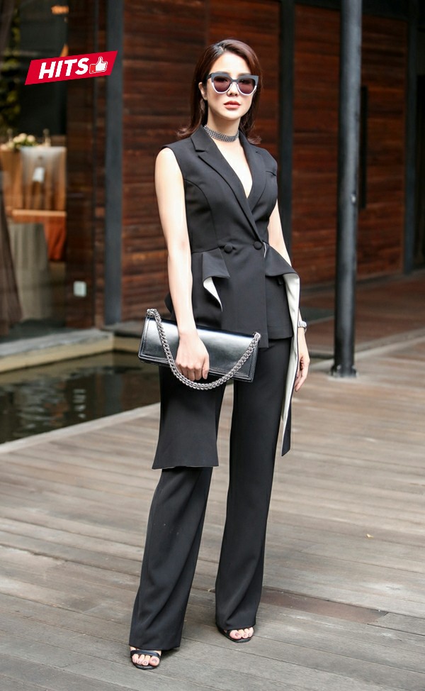 Diệp Lâm Anh khẳng định phong cách thời thượng khi trưng diện bộ vest thời thượng với tông màu đen, trắng. Bên cạnh đó, không thể không kể đến chiếc kính mát 2 màu lạ mắt góp phần làm hoàn thiện set đồ.