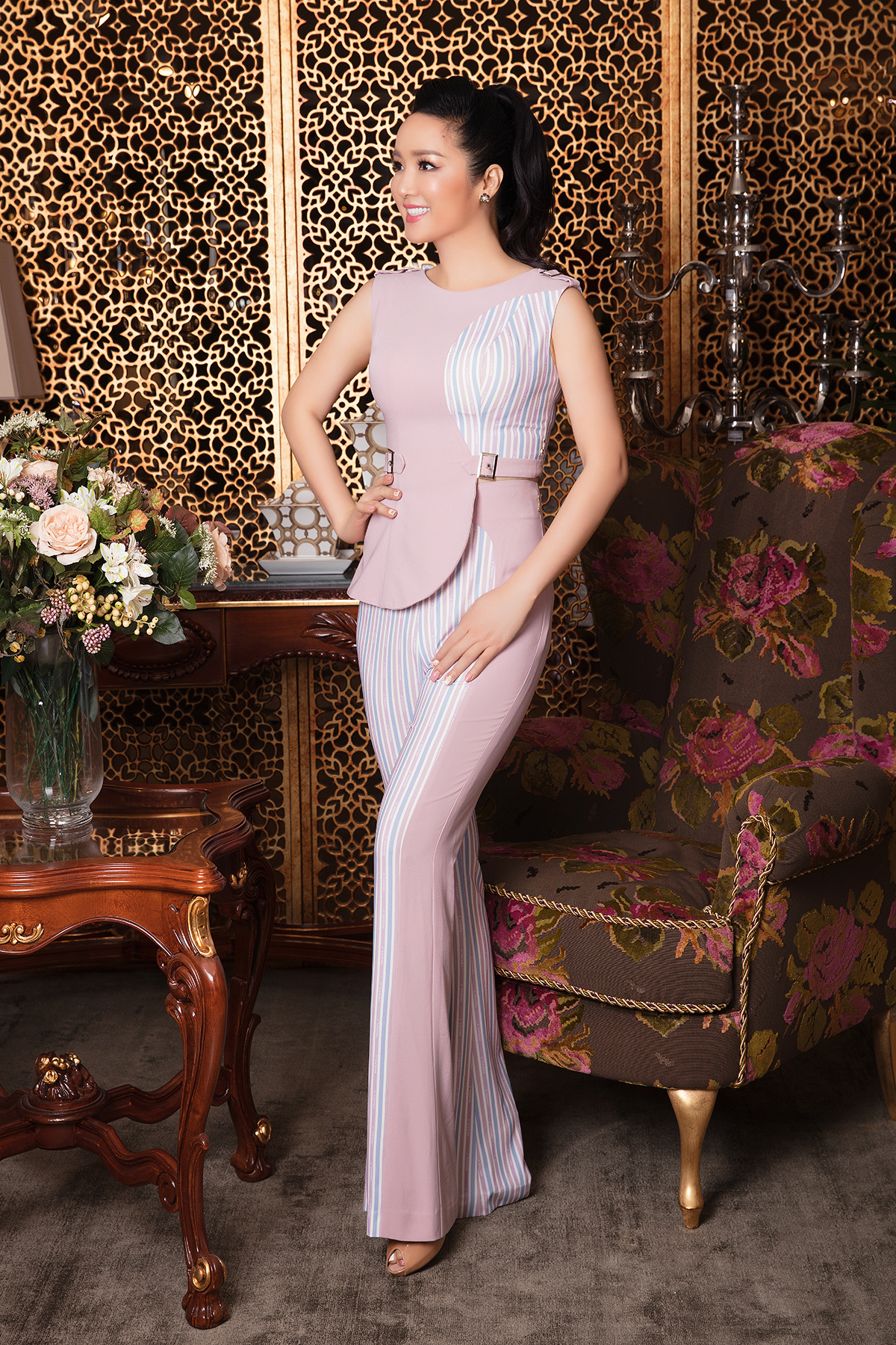 Điểm nhấn là đường sọc kẻ, vừa giữ được nét hiện đại lại vừa chỉn chu, tạo phong cách chuyên nghiệp cho các quý cô văn phòng.