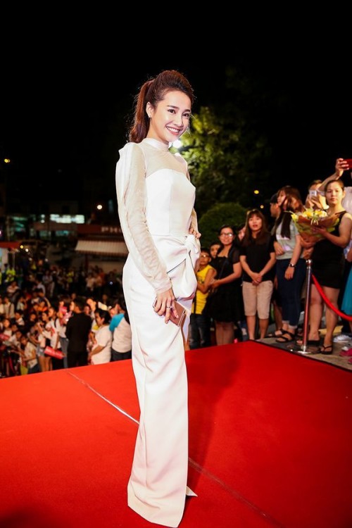 Nhã Phương xinh đẹp với đầm trắng dài trên thảm đỏ.