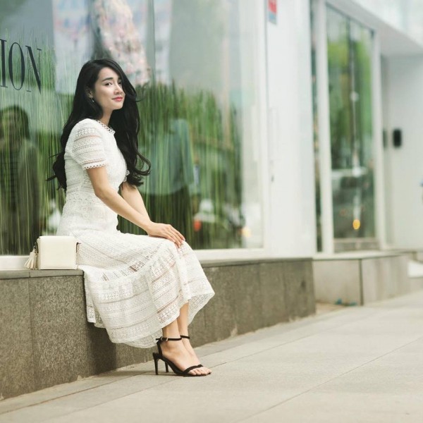 Cô nàng có lần cũng dạo phố trong bộ đầm trắng thướt tha.