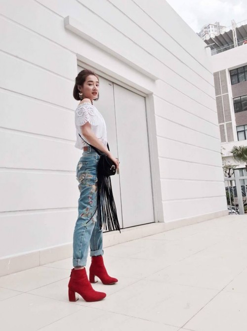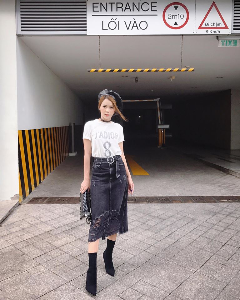 Street style trắng của Nhã Phương cùng thường rất đơn giản.