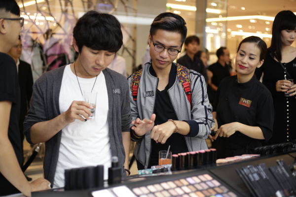 Đông đảo khách mời xuất hiện ngay trước cửa hàng của NARS chăm chú lắng nghe những chia sẻ từ tổng giám đốc NARS.