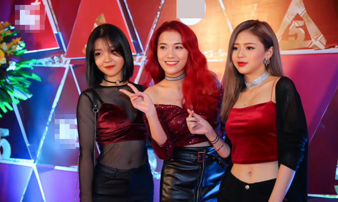 Nhóm nhạc Lime cũng không thể làm ngơ với không khí lễ hội đang rần rần. 3 cô gái đều chọn tone đỏ, đen mix đồ rất ăn ý.