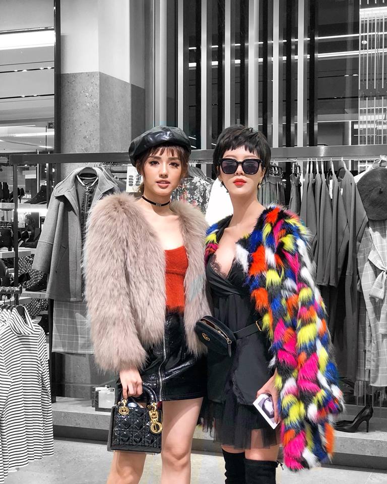 Khánh Linh The Face và quán quân The Look Vũ Ngọc Châm tâm đầu ý hợp khi cùng chọn áo lông sành điệu tại một sự kiện.