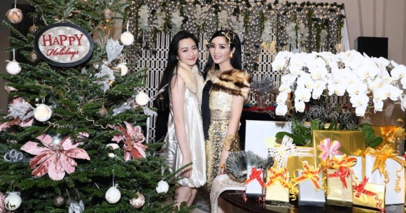 Con gái cô, Anh Sa cũng chọn một chiếc khăn choàng cổ lông ấm áp ăn ý với mẹ.