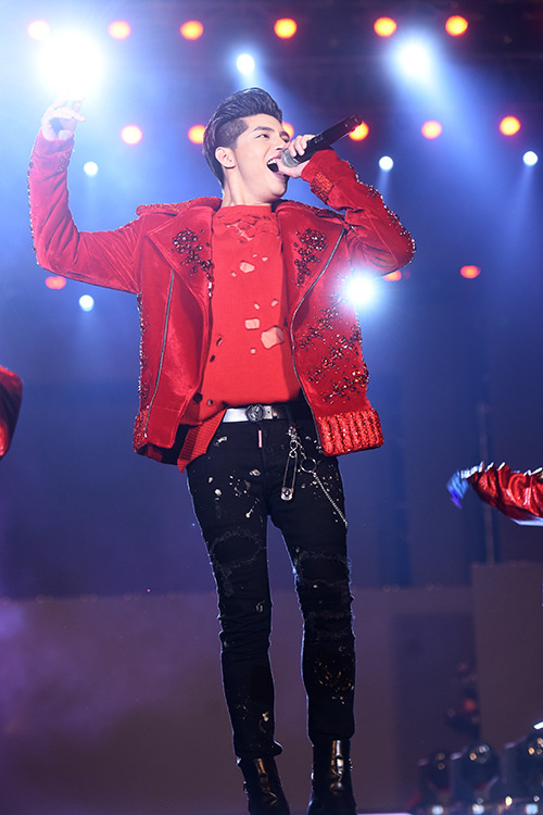 Ca sĩ Noo Phước Thịnh cũng hưởng ứng không khí lễ hội bằng bộ cánh đỏ rực rỡ.