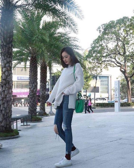 Sở hữu, gương mặt thanh tú cùng vóc dáng thanh manh nên dù chỉ diện style đơn giản như áo lên rộng và quần jean rách như thế này thì nữ diễn viên Cbiz đã đủ cuốn hút rồi.