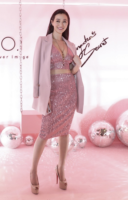 Khánh My cũng gây thương nhớ với bộ cánh tông hồng lấp lánh. Cách sử dụng tông hồng nhẹ nhàng không hề sến sẩm mà ngược lại còn đem đến vẻ đẹp tinh tế, thanh lịch cho người đẹp.