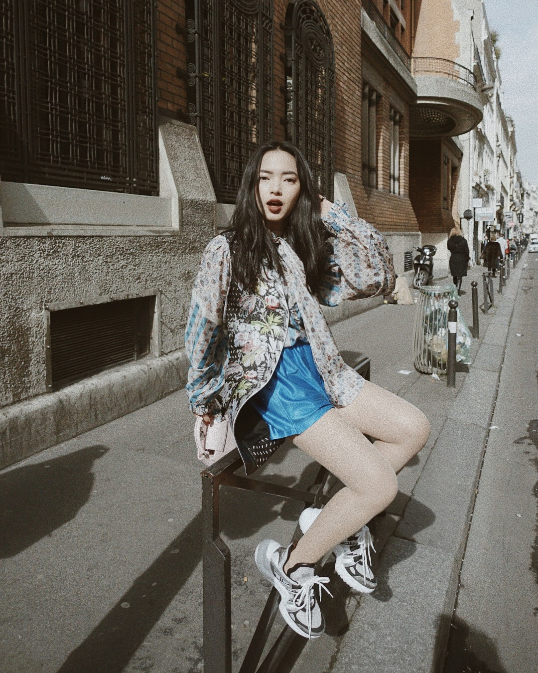 Châu Bùi cũng là một cô nàng thuộc hội ưa thích diện trang phục “tiền tạ, tiền tấn” khi xuống phố. Cả bộ cánh Louis Vuitton đắt giá là lựa chọn của cô nàng fashionista trong chuyến đi Paris vừa qua.