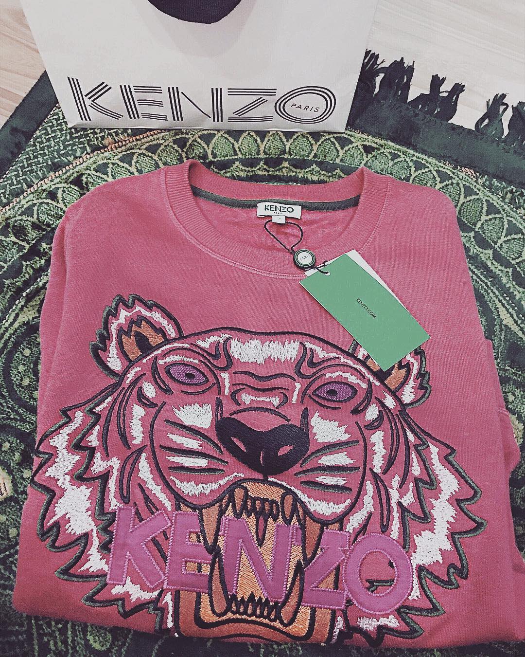 Áo thun Kenzo với họa tiết đầu hổ nhìn dữ dằn thế nào thì cũng phải mang tông màu hồng đậm thì mới có thể lọt vào mắt xanh của Trinh.