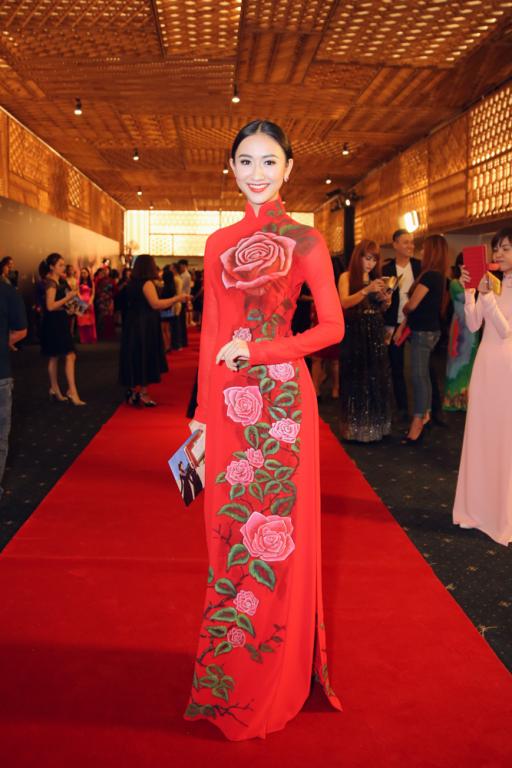 Thân hình hoàn hảo của cô không chỉ hút mắt người xem trong trang phục bikini hay trang phục dạo biển mà trong tà áo dài truyền thống, vẻ đẹp hình thể của cô vẫn có thể dễ dàng được nhận ra.