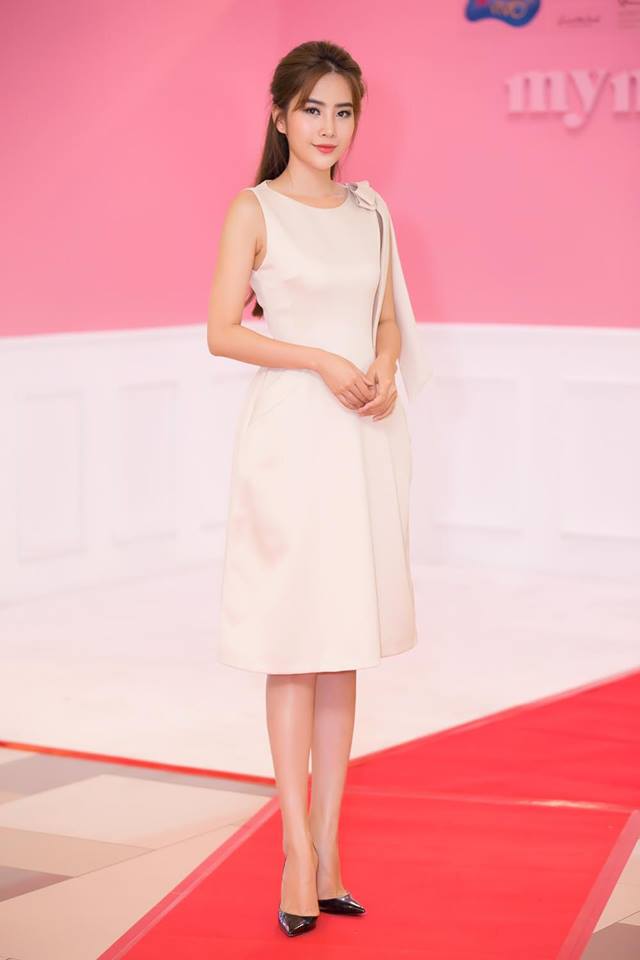Nam Em thường chọn đầm có những gam màu trung tính, màu nude, phù hợp với vóc dáng mong manh của cô nàng.