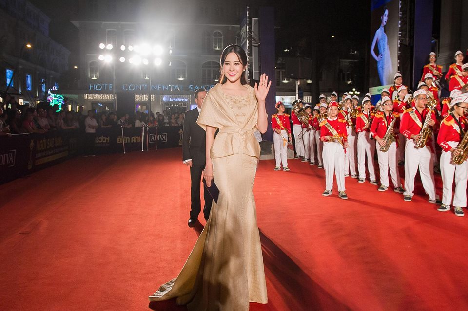 Có thân hình rất đẹp nhưng hiếm khi thấy nàng hoa khôi hở bạo trên thảm đỏ. Đây là một trong số ít lần Nam Em khoe khéo vòng 1 chốn đông người.