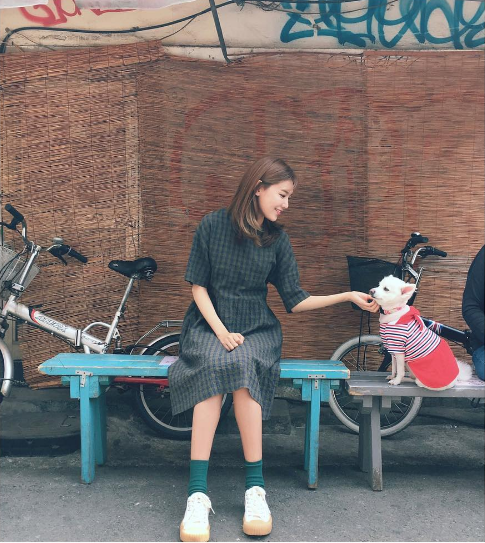 Chiếc váy sơ mi kẻ sọc cổ điển phù hợp với phong cách thanh lịch, tinh tế từ sự sáng tạo của Sooyoung.