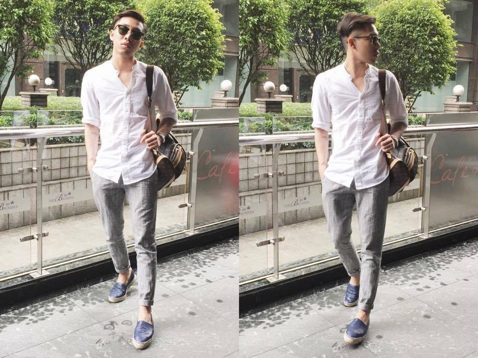 Không thể nào không nhắc tới Hoàng Ku, anh chàng diện sơmi cực nam tính nhưng lại diện giày đế cói của thương hiệu Chanel trị giá 15 triệu đồng.