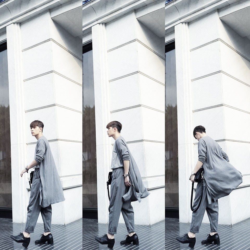 Không khó để nhận ra kiểu dáng của những đôi giày vốn dành cho phái nữ. Cùng với đó, Kelbin kết hợp với muôn vàn kiểu blazer dáng dài khoác ngoài.