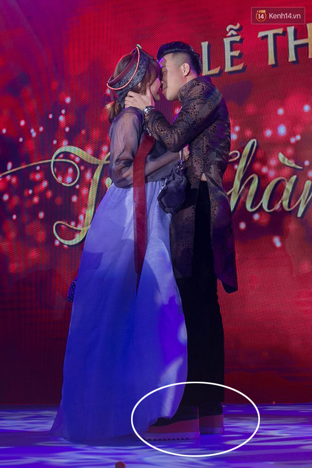 Với chiều cao không quá chênh lệch với cô dâu Hari Won nên Trấn Thành đã phải nhờ tới sự trợ giúp của đôi giày cao tới tận…20cm trong đám cưới của mình.